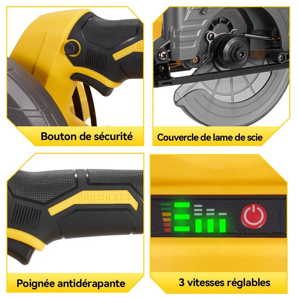 Sans batterie : 1 × scie circulaire 6 pouces, 3 × lames de scie