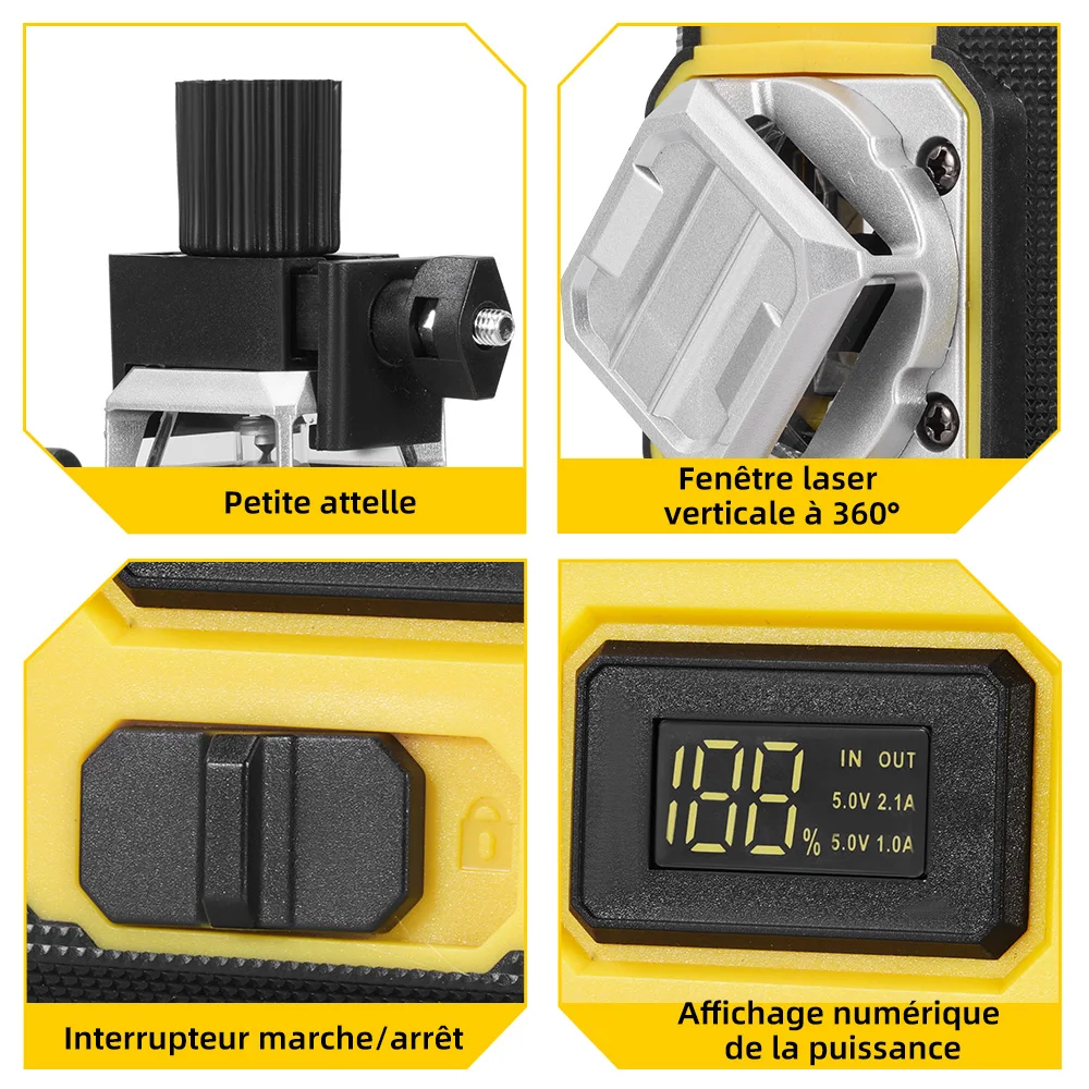 Outil indispensable pour les projets de construction, menuiserie et rénovation, ce niveau laser sans fil offre des mesures précises et un nivellement automatique pour carreler, installer des armoires, encadrer ou tout autre projet nécessitant un alignement parfait.