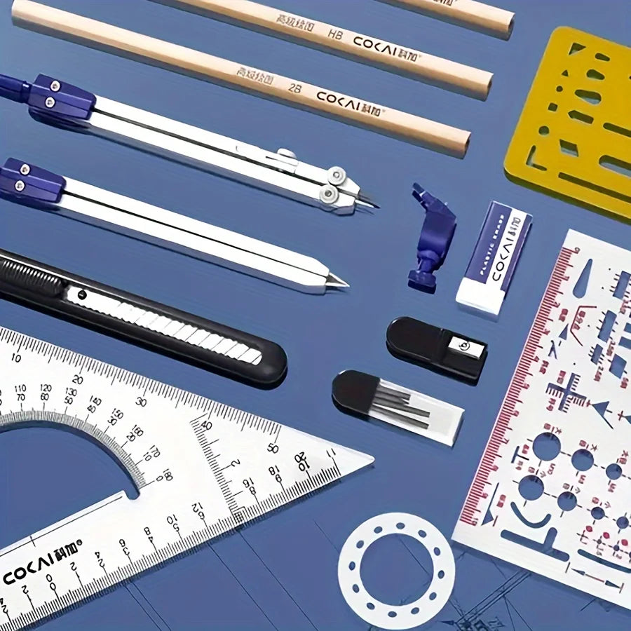 Coffret de dessin, kits de géométrie et d'ingénierie, outils de dessin et de construction, etc. 15 pièces
