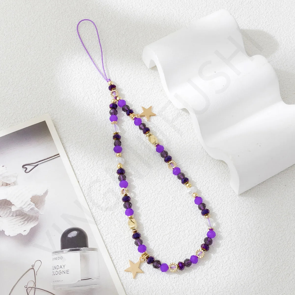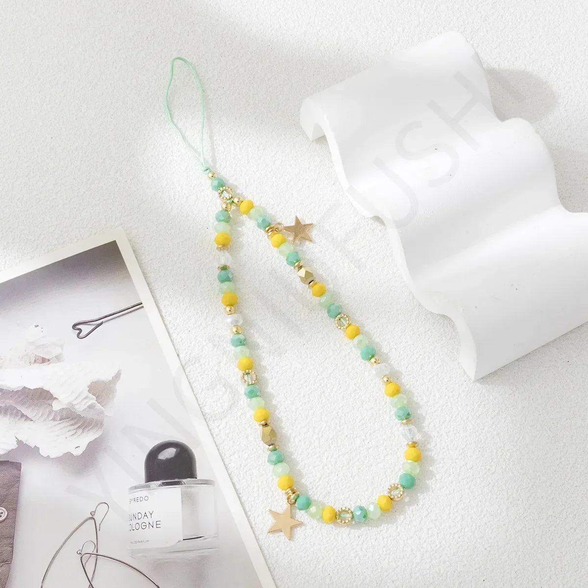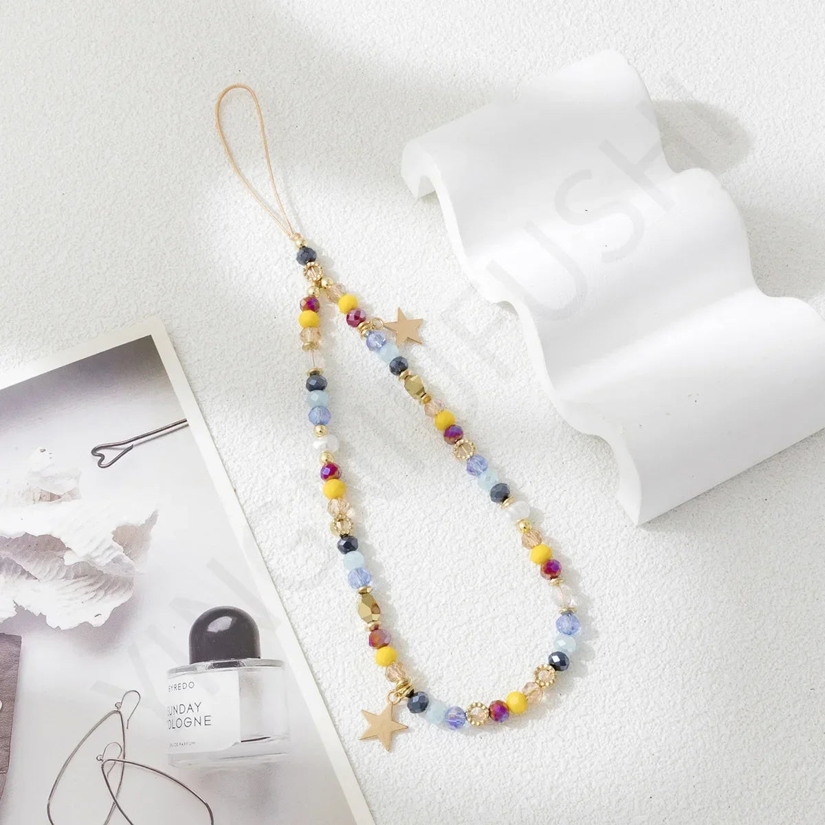 Pendentif étoile à cinq branches pour téléphone portable, chaîne perlée, portable, corde de suspension, lanière de téléphone pour femmes, bijoux