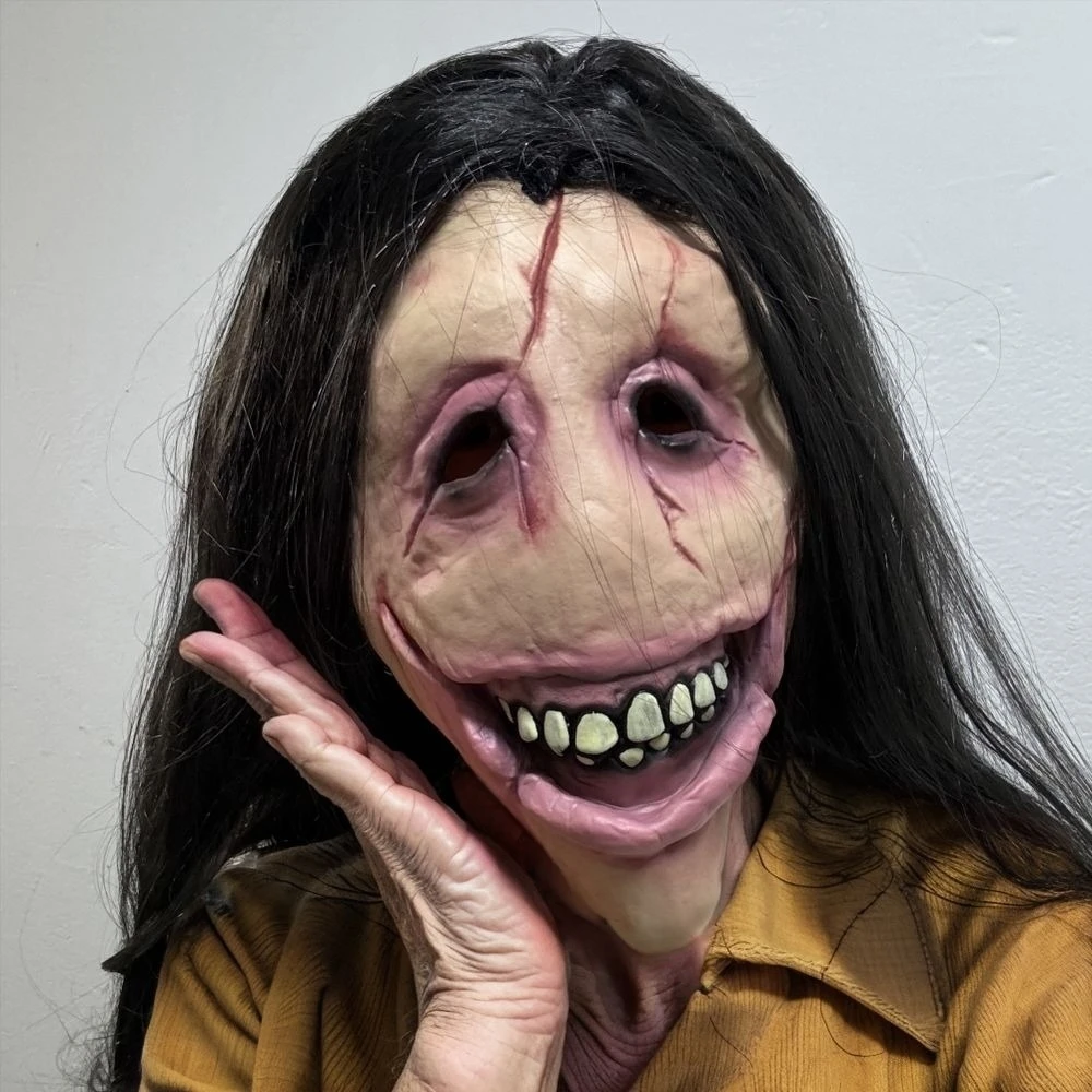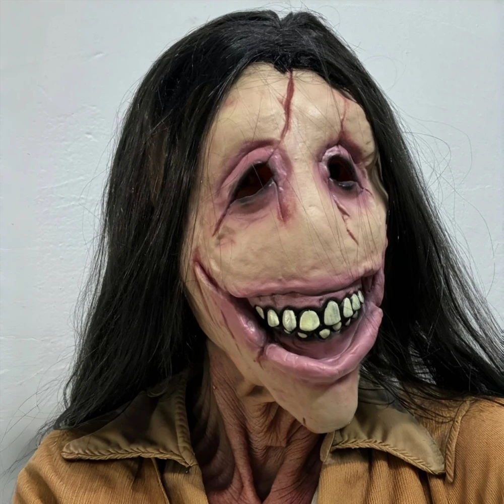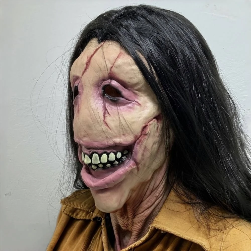 Perruque longue en caoutchouc pour adultes, masque facial moche du diable sanglant de Zombie, masque effrayé d'halloween pour accessoire de fête Cosplay