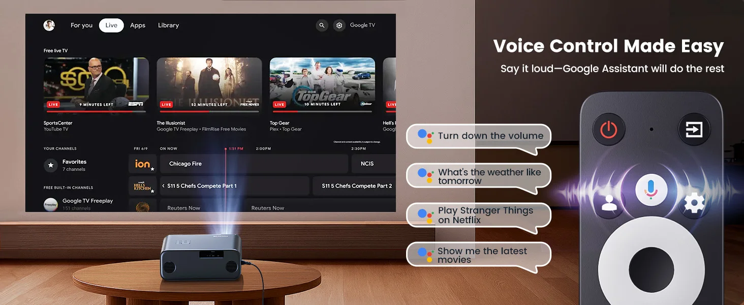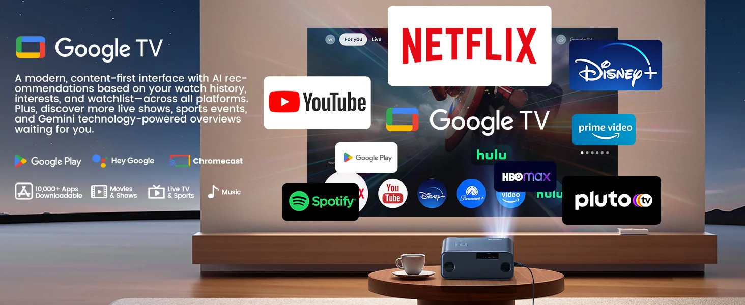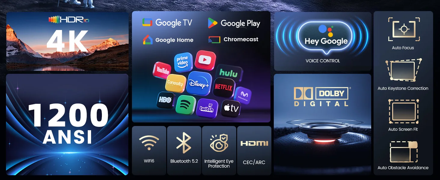 Projecteur Vidéo Wimius 4K Google TV 1200 ANSI – Home Cinéma avec Haut-parleurs 20 W