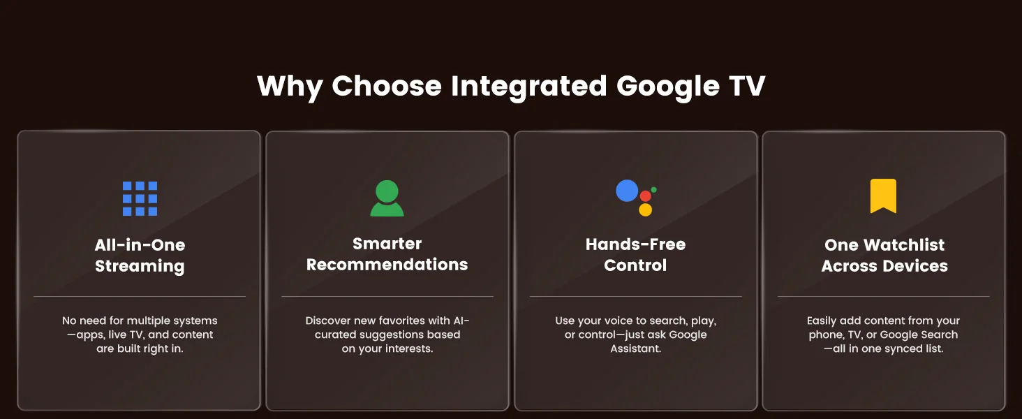 Streaming prêt avec Google TV : Netflix, YouTube, Prime Video préinstallés