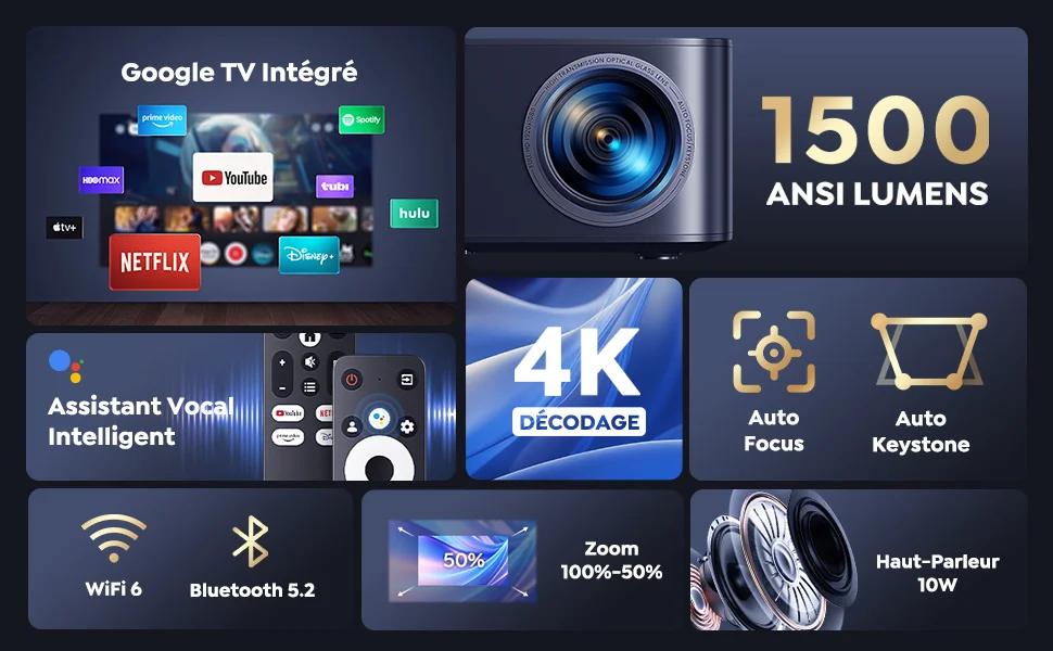 Projecteur Vidéo PUTRIMS 4K 1500 ANSI – Home Cinéma avec Netflix et Android TV 11.0
