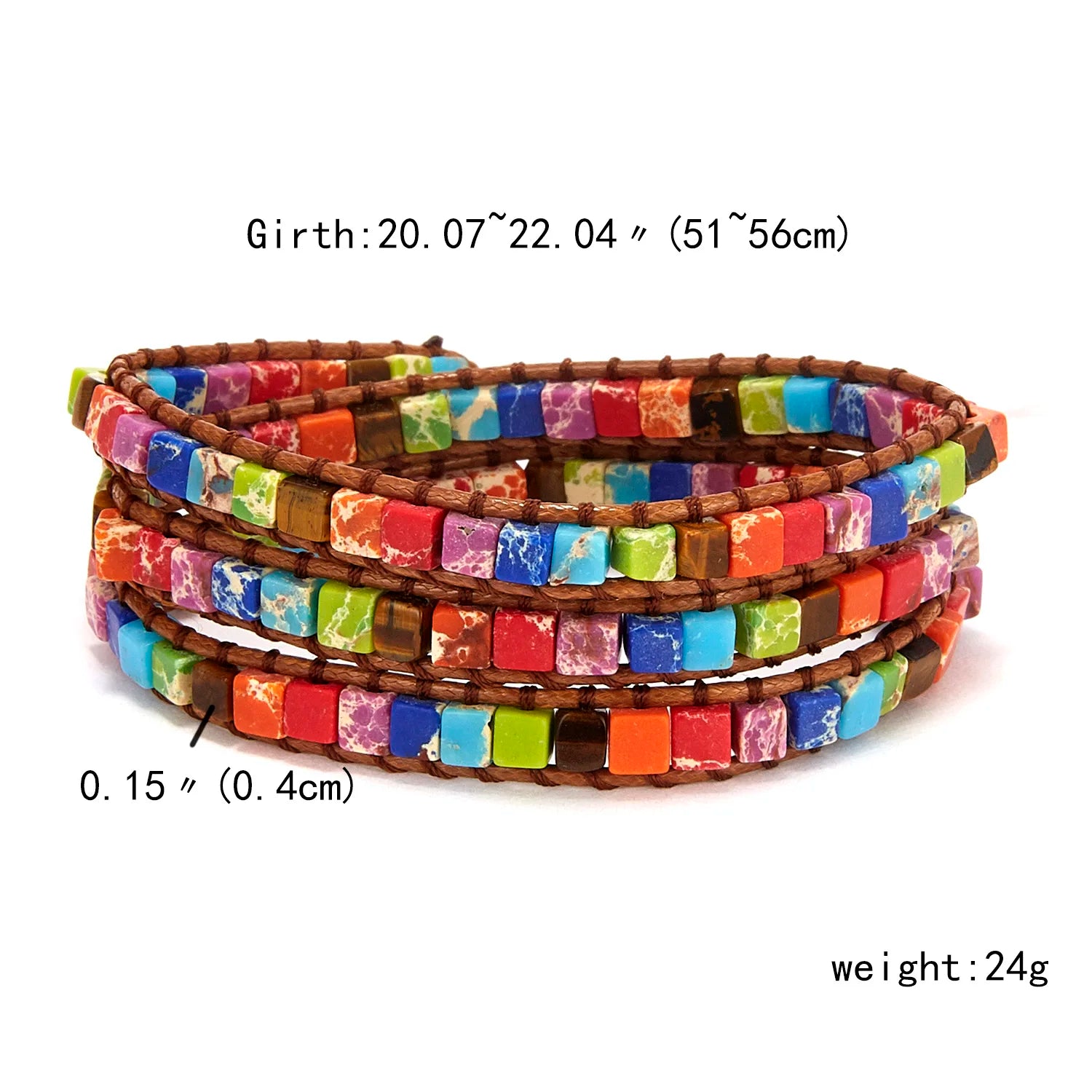 Bracelet Chakra fait à la main multicolore en pierre naturelle, perles en cuir, Bracelets en pierre naturelle