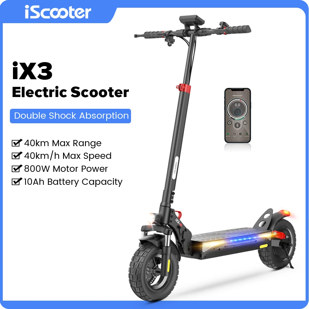 Trottinette électrique iScooter iX3 800 W 10 Ah puissante trottinette électrique tout-terrain Antidérapante, Autonomie de 40 km eScooter