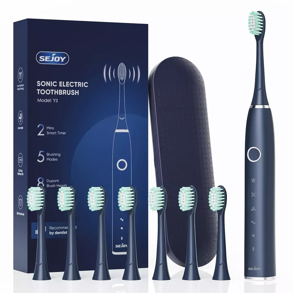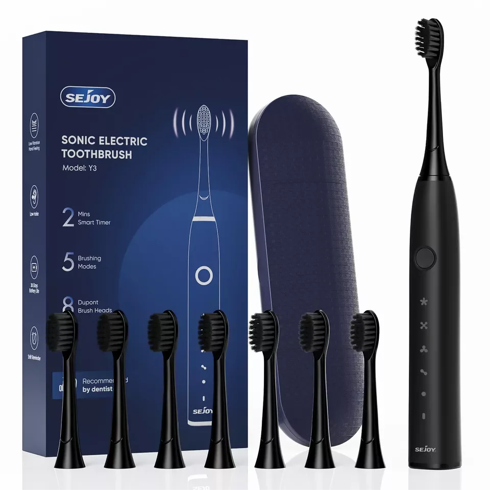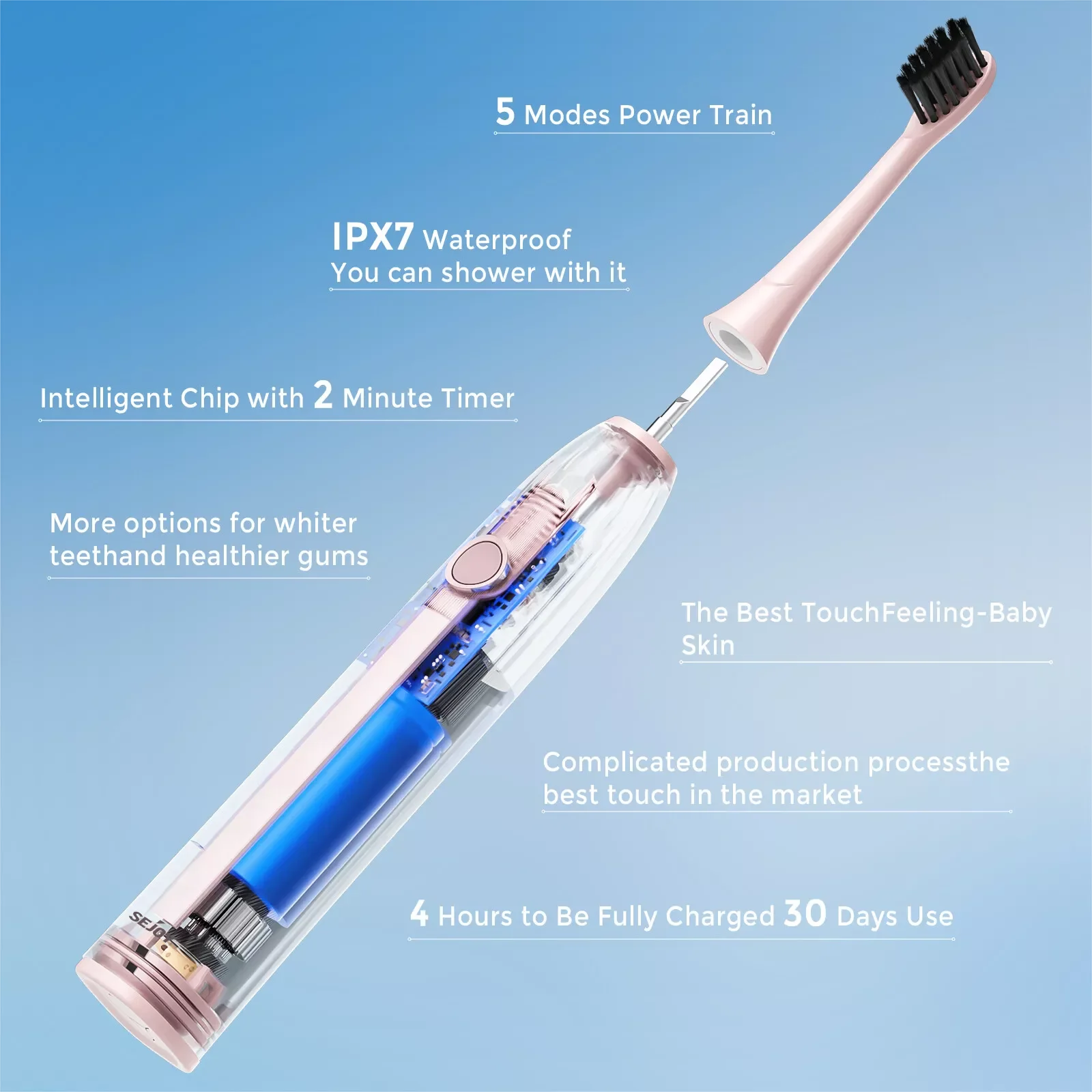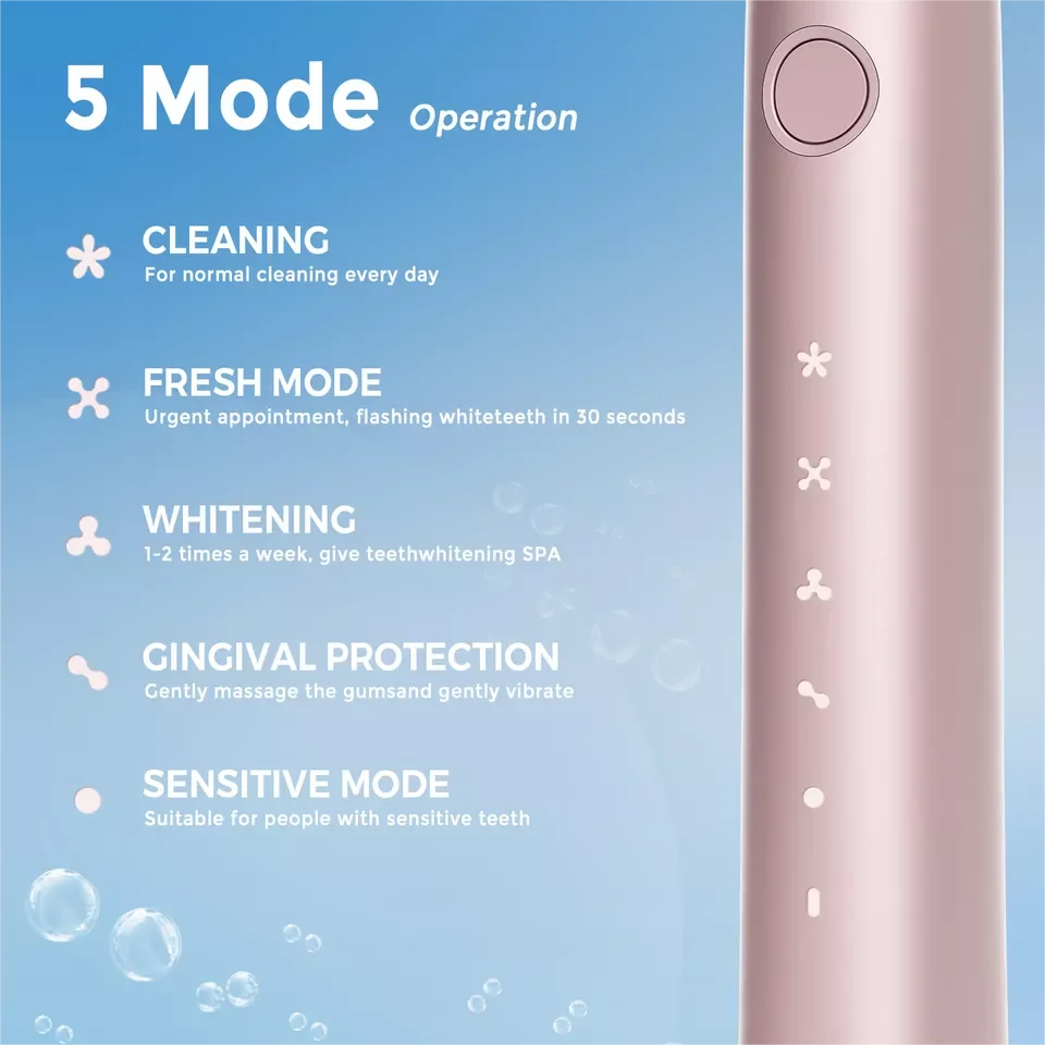 Brosse à dents électrique pour adultes, 5 modes avec 8 têtes de rechange