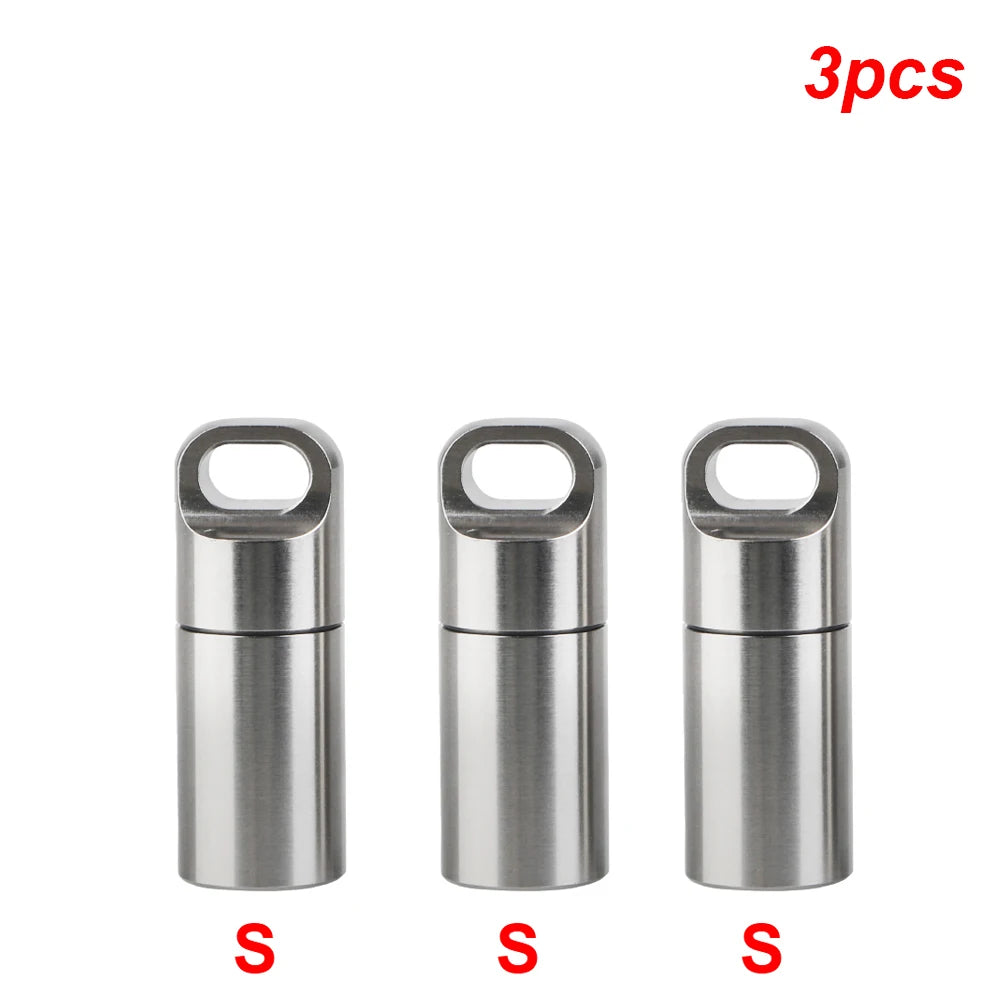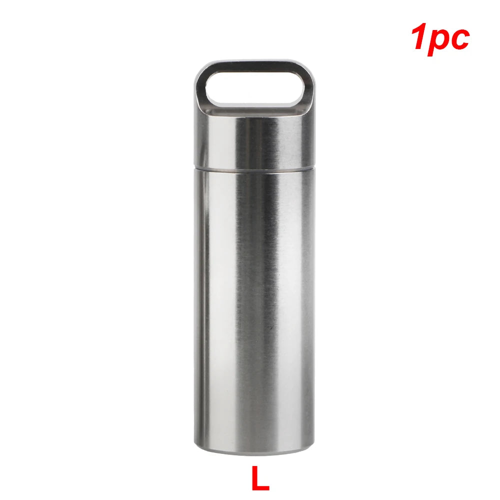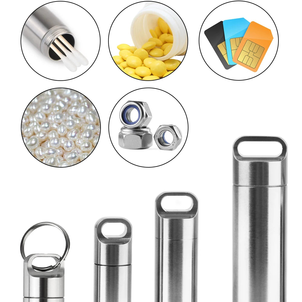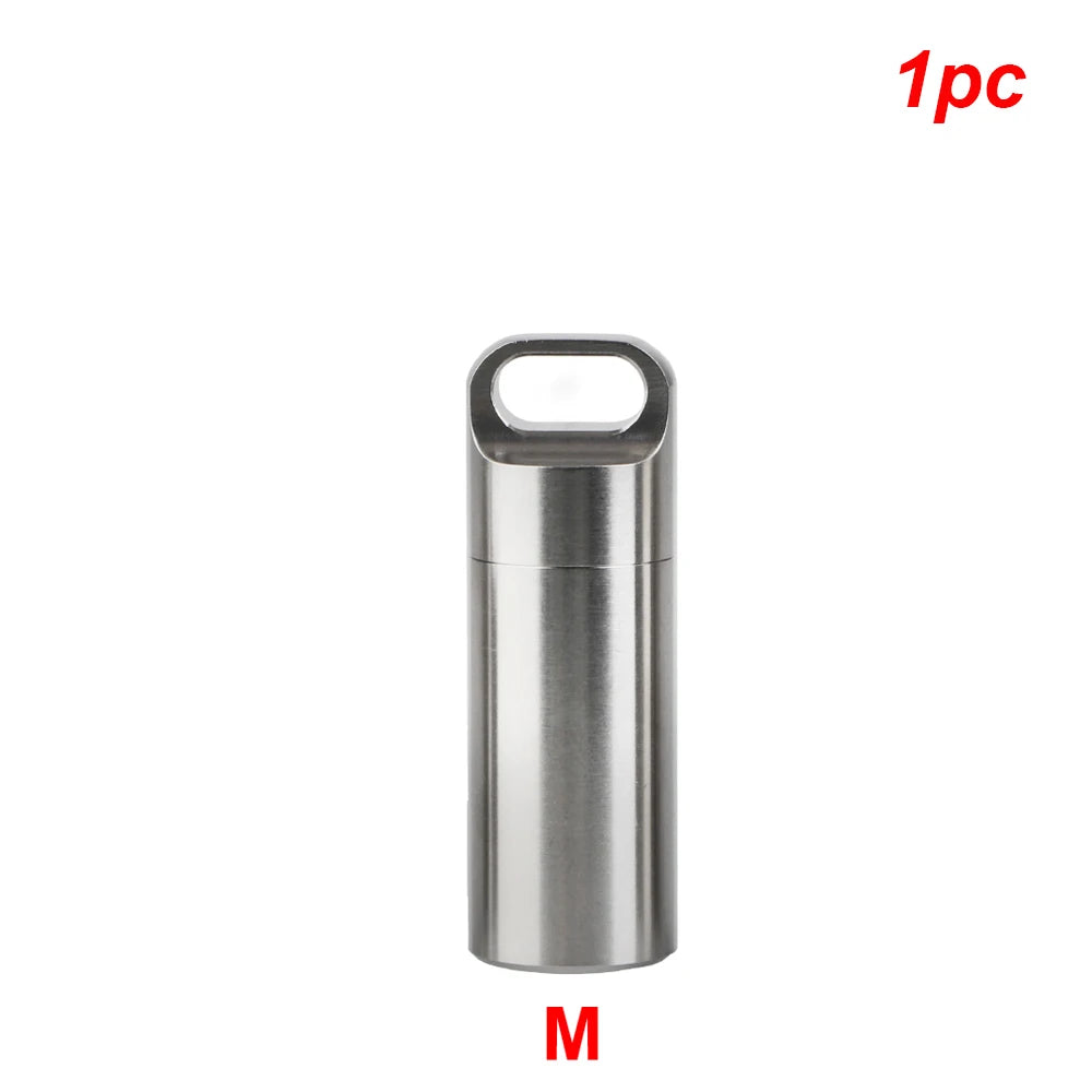 Boîte de rangement de pilules en acier inoxydable S M A L L avec porte-clés, anneaux d'étanchéité, pendentif de premiers secours de camping, mini étui à médicaments étanche et portable