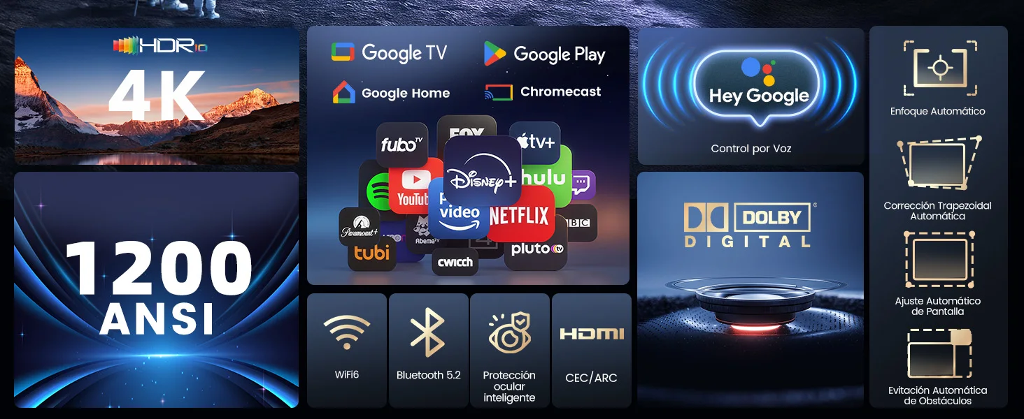 Projecteur Vidéo Wimius 4K Smart Google TV 1200 ANSI – Home Cinéma Portable
